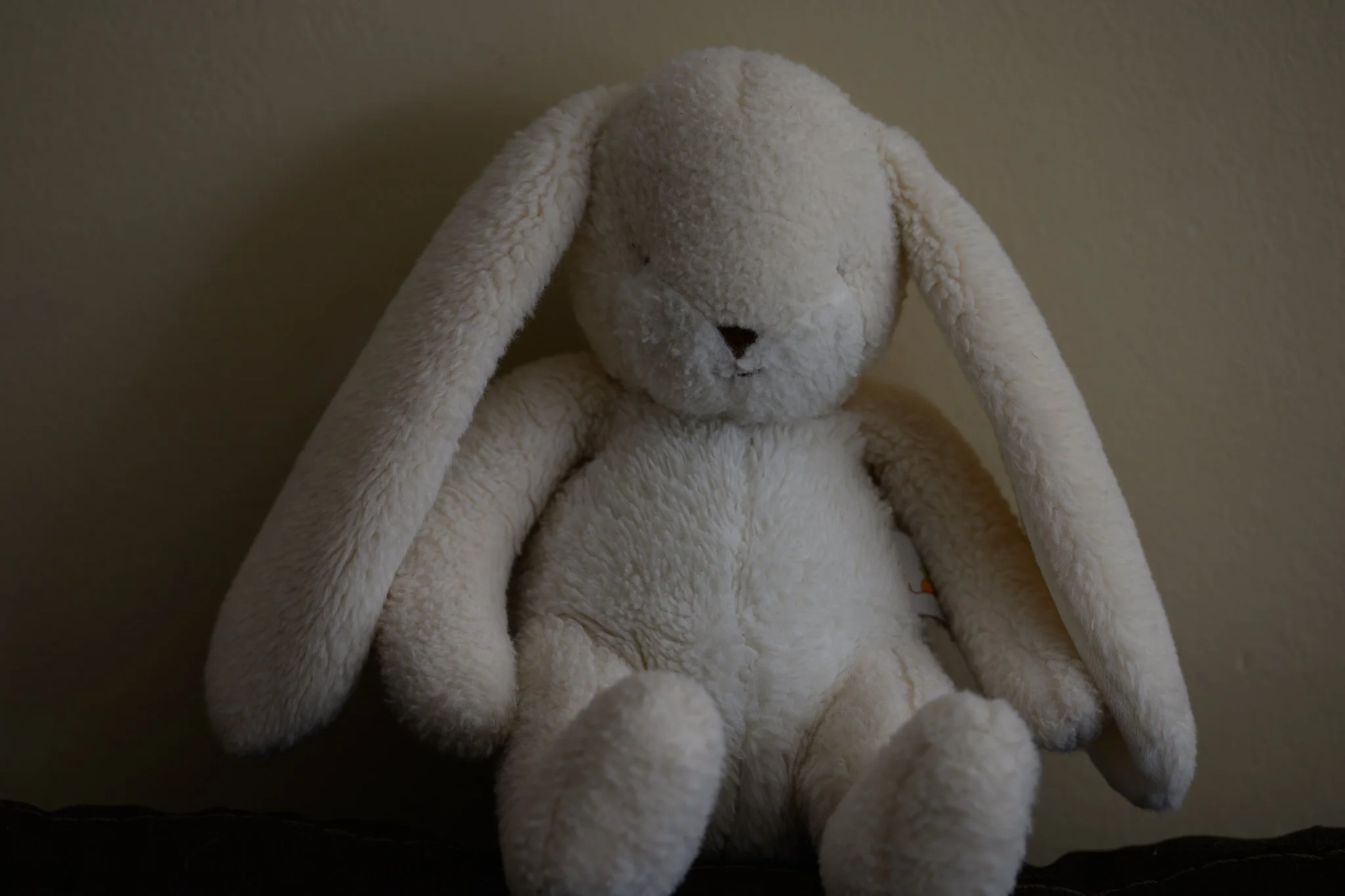 This is a white bunny against a cream/yellow background. In this image, my exposure is set to 0.