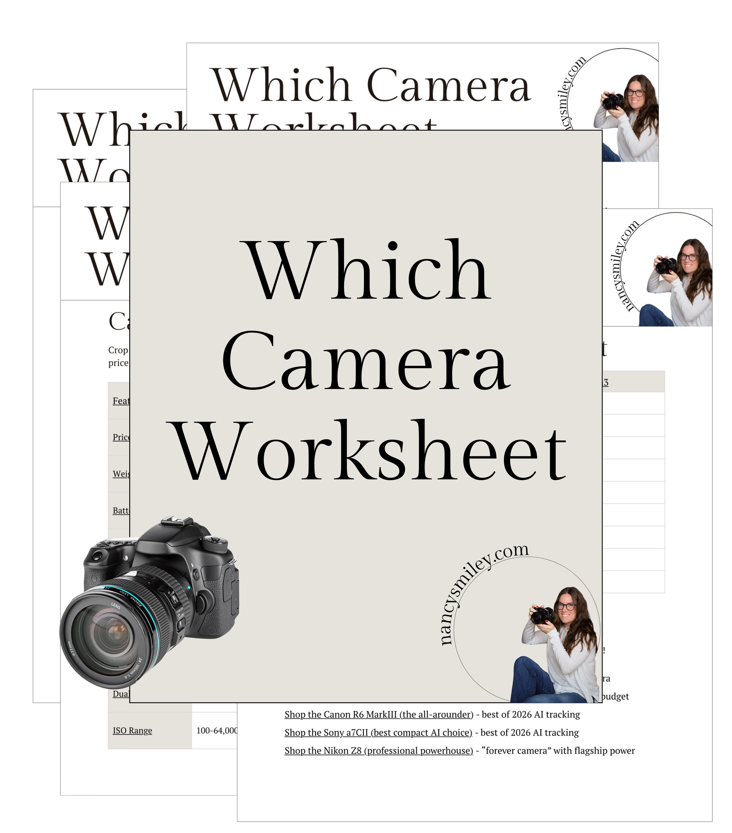 Compare Nancy’s top cameras to help in purchasing your first or next camera! Plus a blank worksheet for you to compare your own cameras.